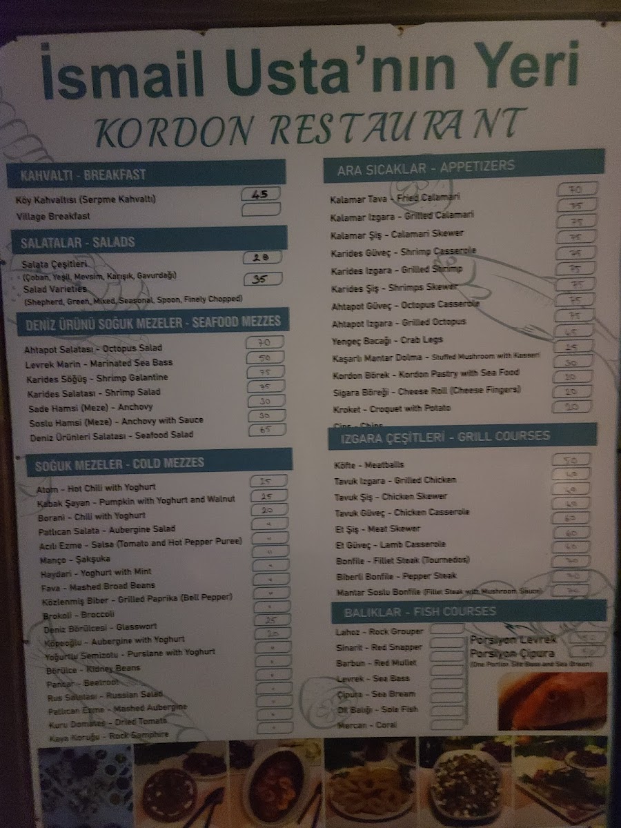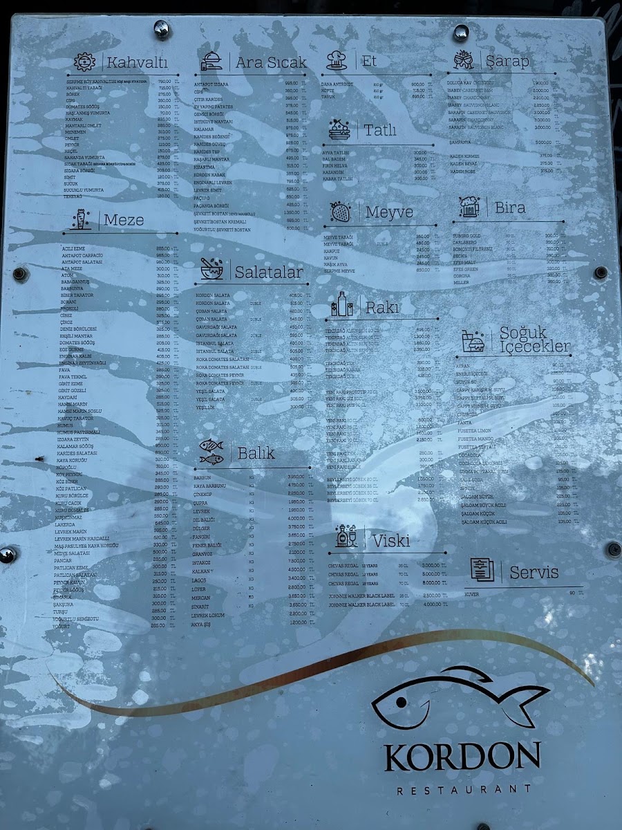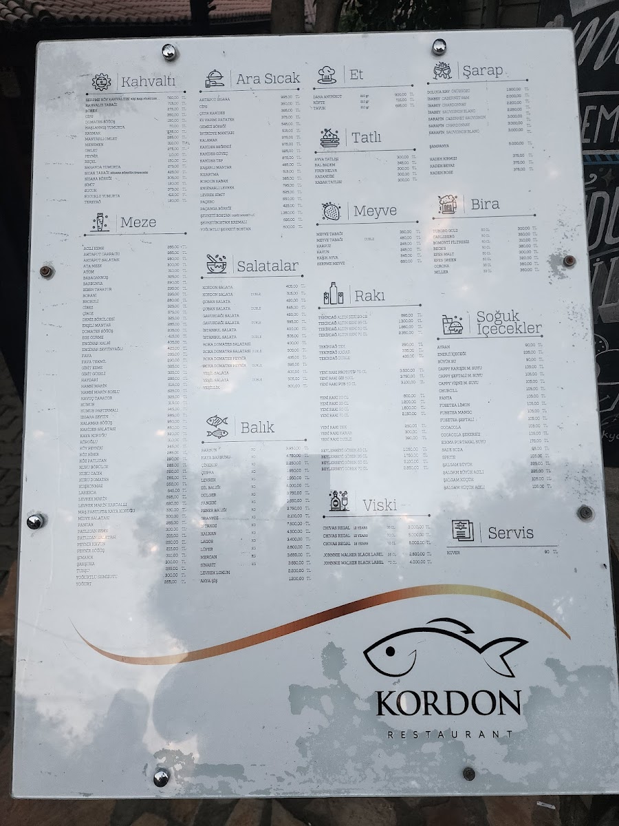 Nestled in the heart of Akyaka, Kordon Restaurant offers a delightful blend of traditional and contemporary Turkish flavors that will transport your taste buds straight to the Mediterranean. Whether you're in the mood for freshly grilled fish, a tender kebab, or a savory meze platter, the Kordon Restaurant Menu has something to satisfy every craving. The inviting atmosphere of the restaurant, paired with its stunning riverside views, makes every meal feel like a special occasion. From the moment you glance at the menu, you'll be treated to a carefully curated selection of dishes, all made with the finest ingredients and a true passion for Turkish cuisine. Enjoy a dining experience where great food meets exceptional service, creating a lasting impression that keeps you coming back for more.